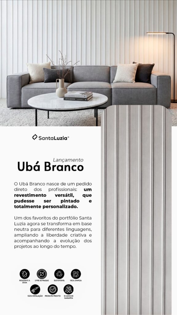 Outro destaque do lançamento é o Ubá Branco, pensado especialmente para arquitetos e designers que buscam flexibilidade.