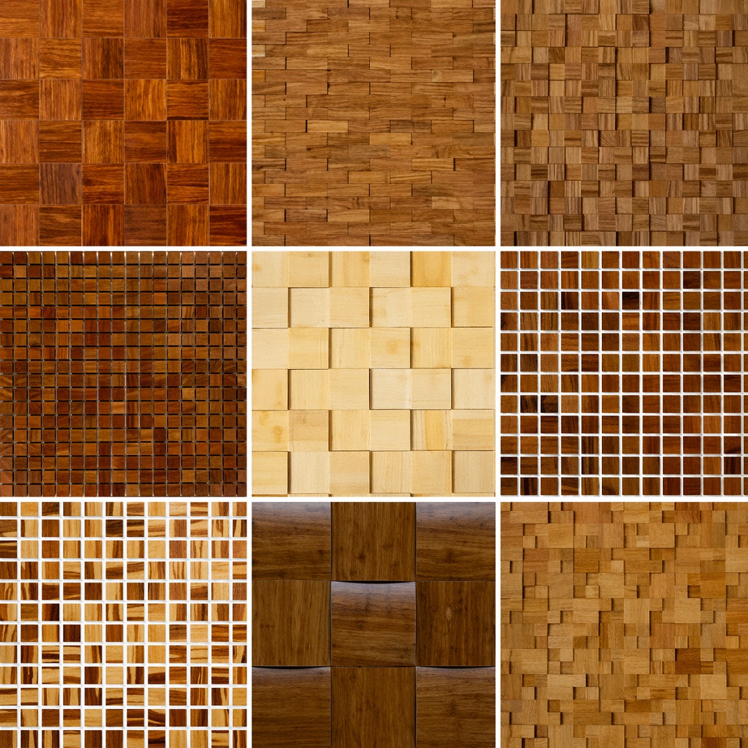 Os mosaicos em pastilhas são revestimentos compostos por pequenas peças de madeira natural organizadas em placas modulares. Essas placas podem apresentar diferentes: